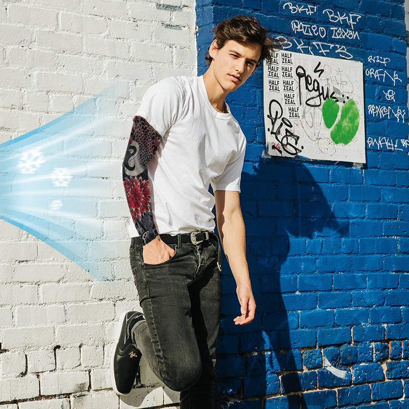 UPF 50+ STOFFBESKYTTELSE â I motsetning til solkrem gir disse ermene fysisk UV-blokkering uten fettet rester. Det tettvevde nylonstoffet fungerer som en permanent skjerm som blokkerer 98 % av UV-strĂ„lene â perfekt for svĂžmmere, svette treninger eller de som unngĂ„r tradisjonell solkrem.